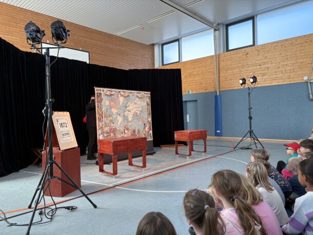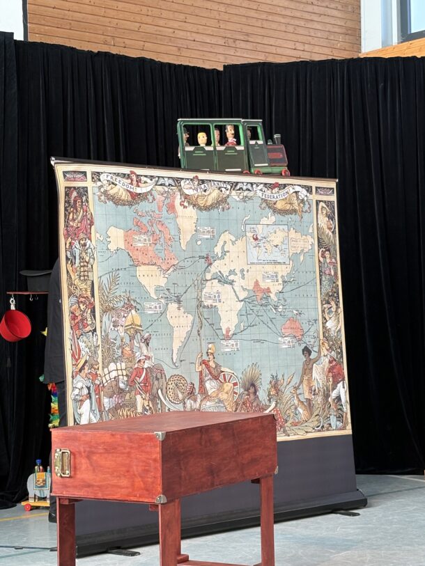 Am Dienstag, 23.9.25 war wieder das Puppentheater Niekamp bei uns zu Besuch. Diesmal fanden die Vorführungen in der Sporthalle statt. In diesem Jahr hat uns das Stück „In 80 Tagen um die Welt“ erfreut.