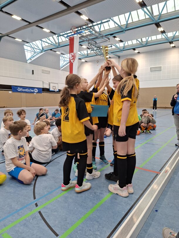 Die Mädchen ohne Verein sind sogar bis ins Finale gekommen, welches sie gegen die Grundschule Klint mit 2:0 gewonnen haben. Beide Tore wurden von Paula Schulz (4a) erzielt. Weitere Mitglieder der Mannschaft waren: Hilke Norden (3a) – Merle Hollebohm (3c) – Hermine Abel (3c) – Julia Lüking (3d) – Volha Adzintova (3d) – Luisa Brink (3d).